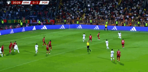 第10分钟,坎塞洛助攻菲利克斯头球破门,葡萄牙1-0亚美尼亚